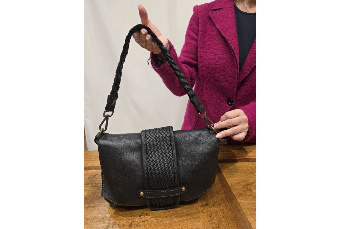 Prix réduit Nouveau Sac à bandoulière en cuir... 99,90 € 134,90 € Tige en cuir lavé avec rabat à insertion tissée à la main. Poignée tressée Fabrication florentine Doublure en tissu Dimensions : 32 x 22 x 4 cm Cuir de haute qualité