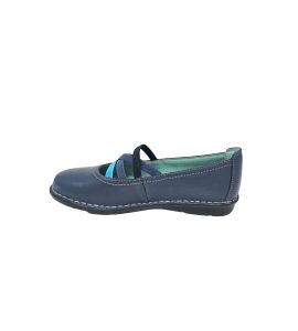 Ballerina in pelle con elastici colorati e cuciture a contrasto - BLU