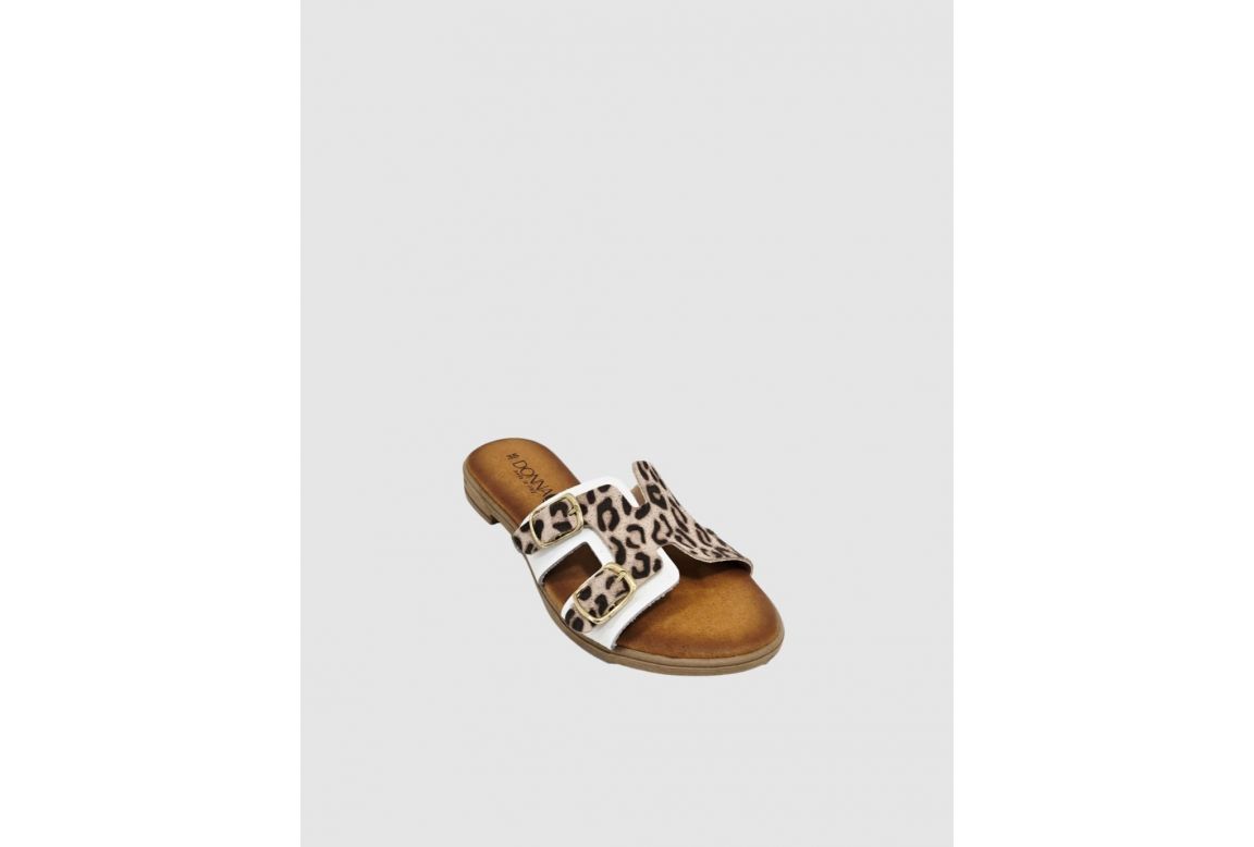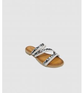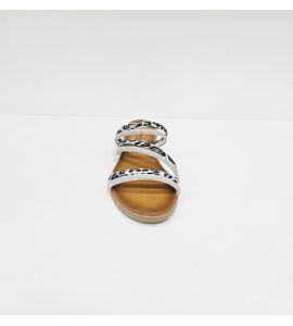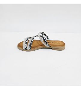 Ciabattina donna con fascette in pelle maculata e strass- ARGENTO