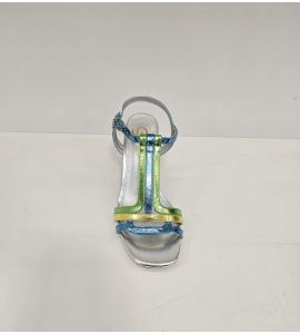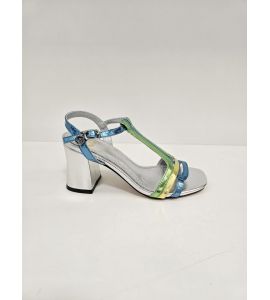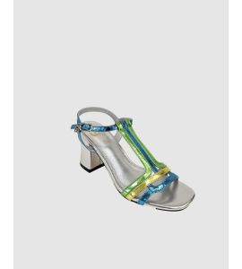 Sandalo donna in ecopelle laminato con colori a contrasto - ARGENTO