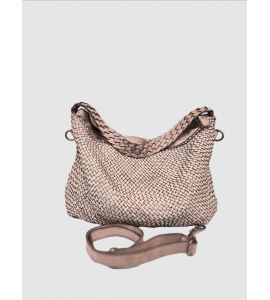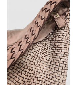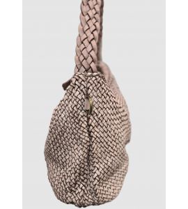 Borsa a spalla in pelle lavata intrecciata su entrambi i lati con manico lavorato a treccia - CIPRIA
