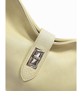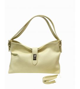 Borsa a spalla in vera pelle con cinturino frontale e chiusura in metallo - GIALLO