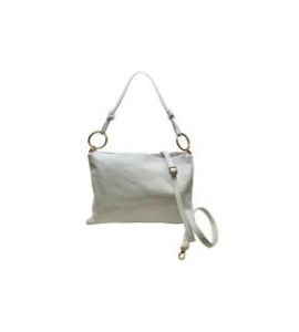 Borsa piatta grande in pelle dollaro con tracolla - BIANCA