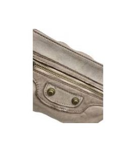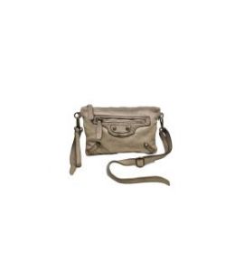 Borsa piccola piatta a tracolla in pelle lavata con tasca frontale e borchie - BEIGE
