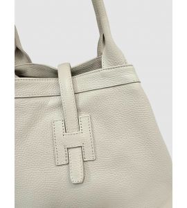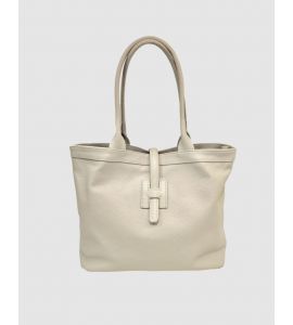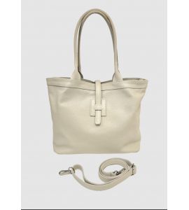 Borsa shopper in pelle dollaro con doppio manico - BEIGE