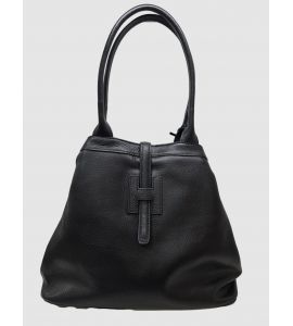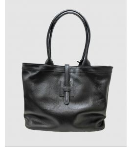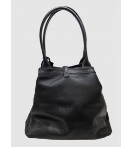 Borsa shopper in pelle dollaro con doppio manico - NERO