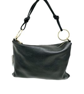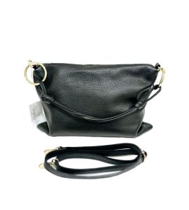 Grand sac en cuir à dollar plat avec bandoulière - NOIR
