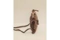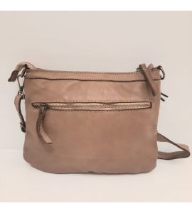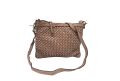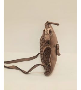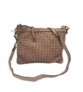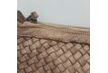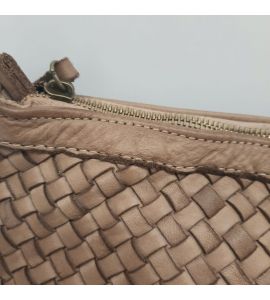 Petite bandoulière plate en cuir lavé tissé à la main des deux côtés. Artisanat - TAUPE