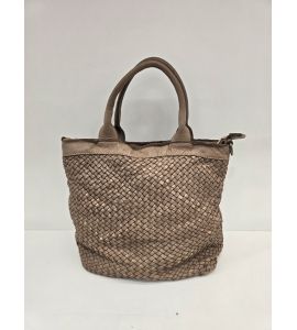 Sac à double poignée en cuir lavé avec tissage fait main des deux côtés - TORTORA